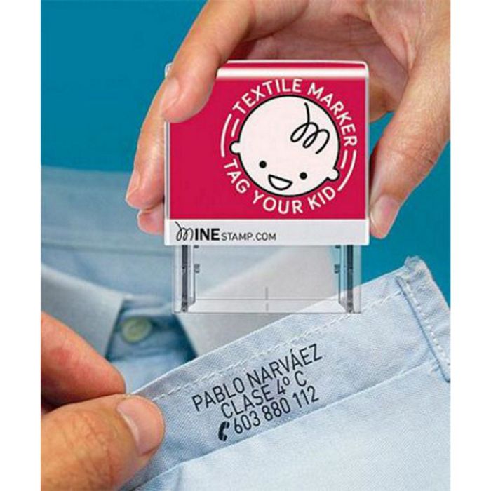 Štampiljka je namenjena označevanju oblačil. Uporabljate jo lahko na vseh vpojnih materialih.